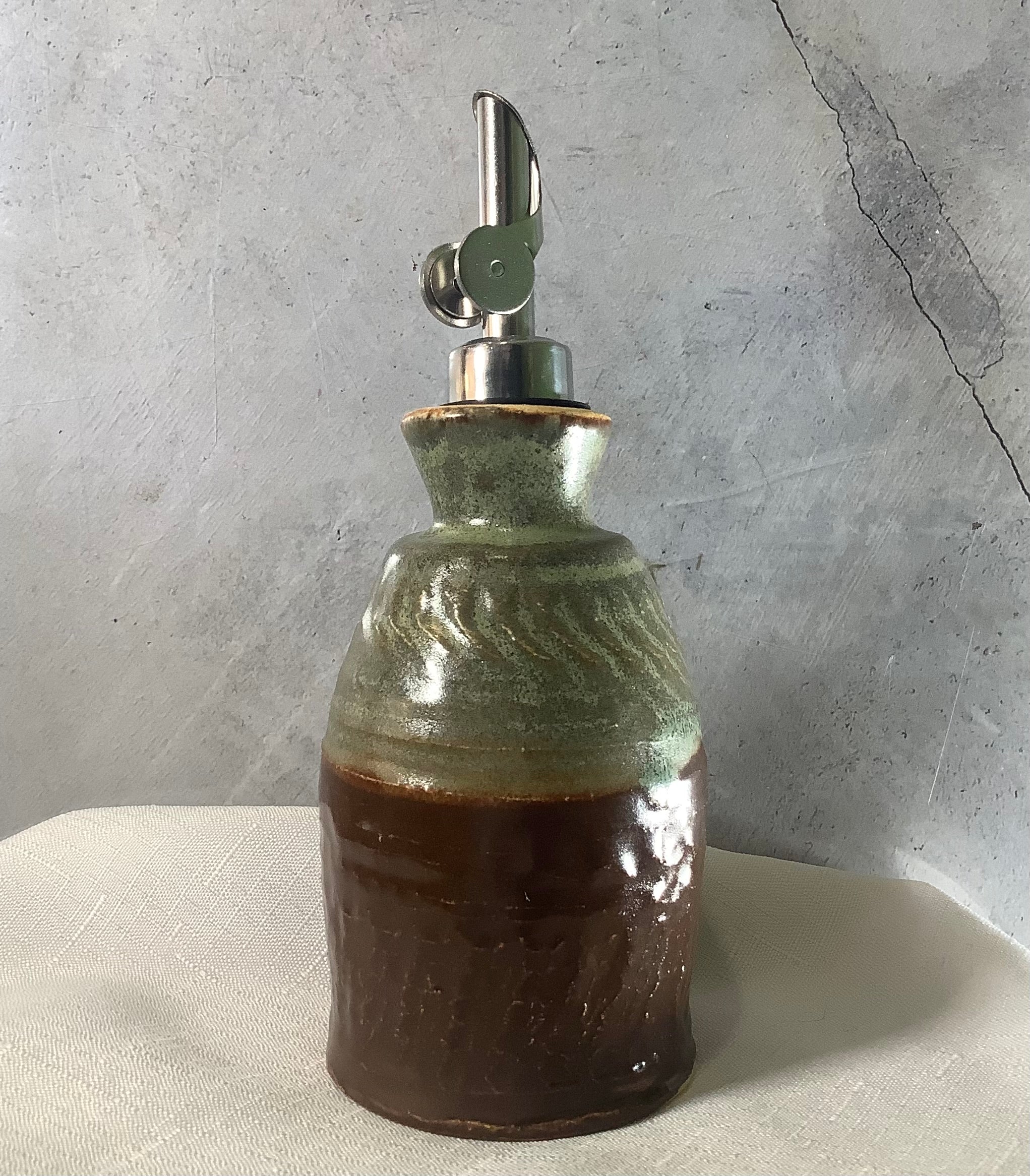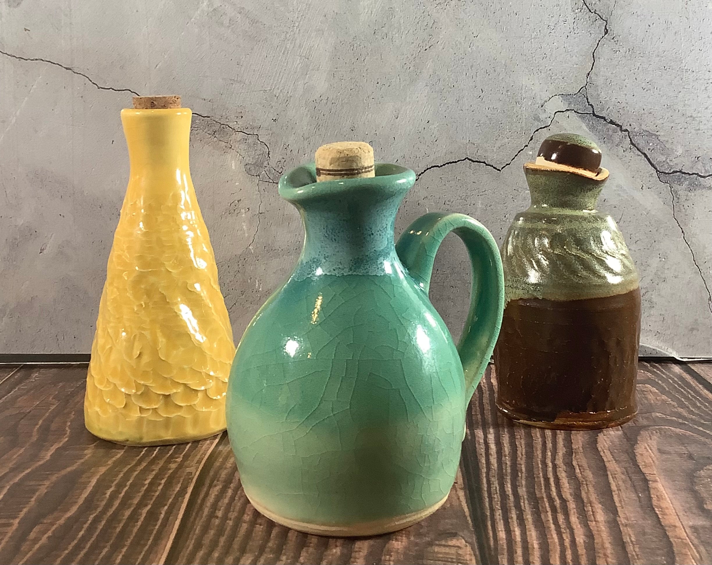 The bottle is smaller than I expected. The color doesn’t fit my decor. However, it is well made and sturdy. I wish I could have picked out the color. Also, for some reason my stopper/pourer doesn’t fit snugly. I would also have wanted a stopper included.