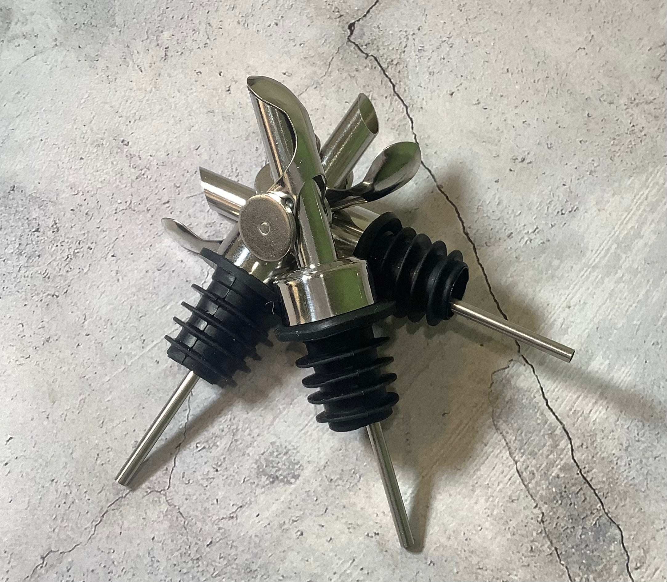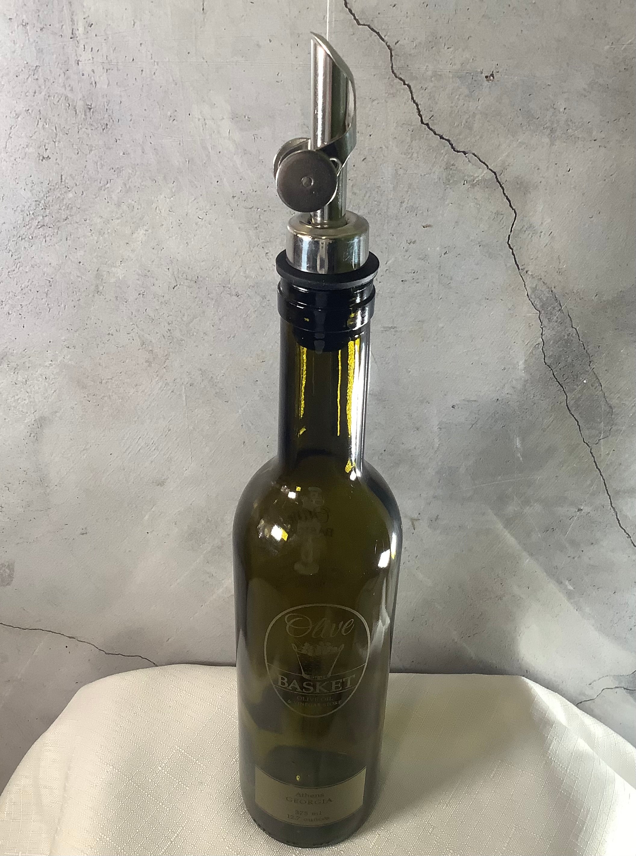 The pour spout works great with the olive oil. Three of my favorite oils are garlic, utscan herb, and lemon.